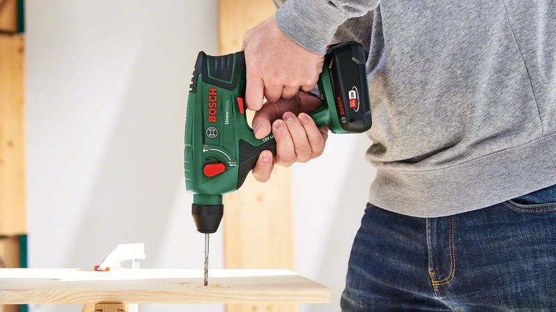3-i-1-verktyget Uneo Maxx sladdlös borrhammare är kraftfull och kompakt och utformad för tuff hammarborrning, borrning och skruvdragning i betong, murverk, metall, trä och kakel. Den pneumatiska Bosch-hammarmekanismen och en stark motor möjliggör enkel och snabb borrning i betong på upp till 10 mm. Den har en systemchuck med SDS för intuitiv användning och snabba byten av alla 1/4"- och SDS quick-bits på 3 sekunder. Detta lätta och kompakta kraftpaket på 1,4 kg arbetar bekvämt i trånga utrymmen och kan tackla alla projekt, från borrning i betong till precisionsskruvdragning i trä, med enkelhet. Verktyget ingår i POWER FOR ALL ALLIANCE. Ett batteri kan användas i en stor mängd verktyg från olika märken.