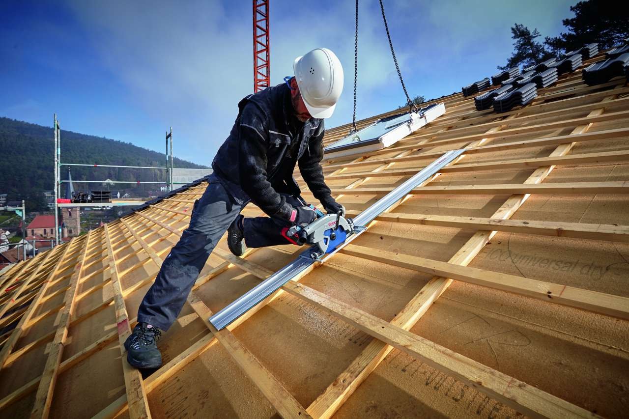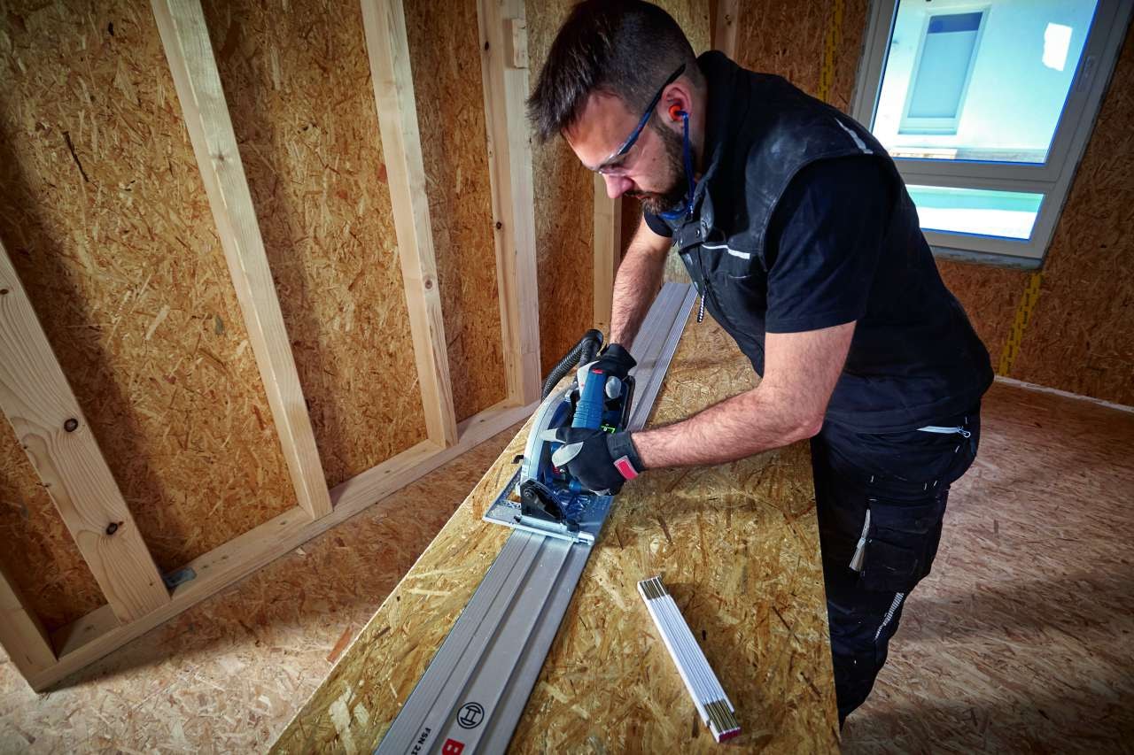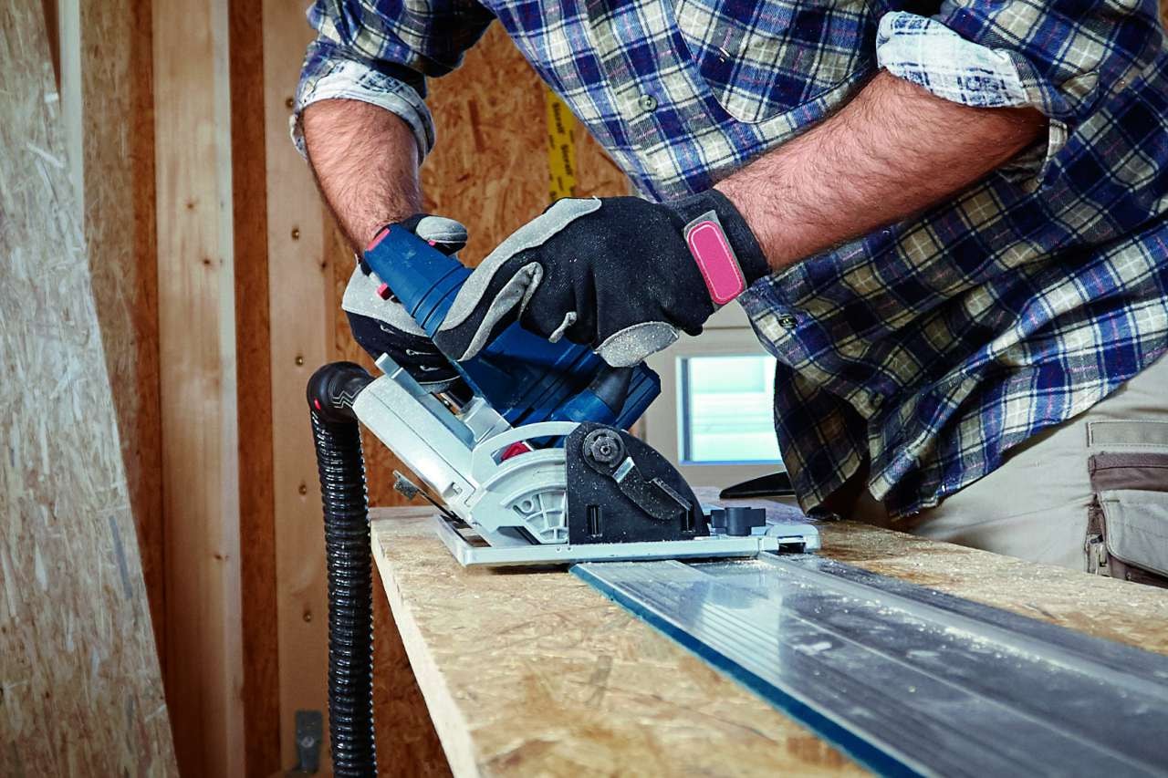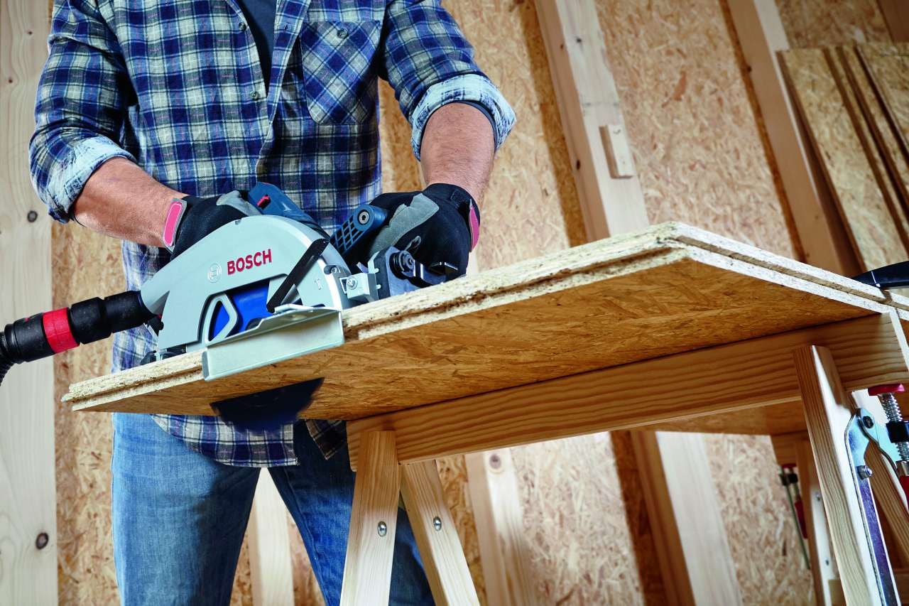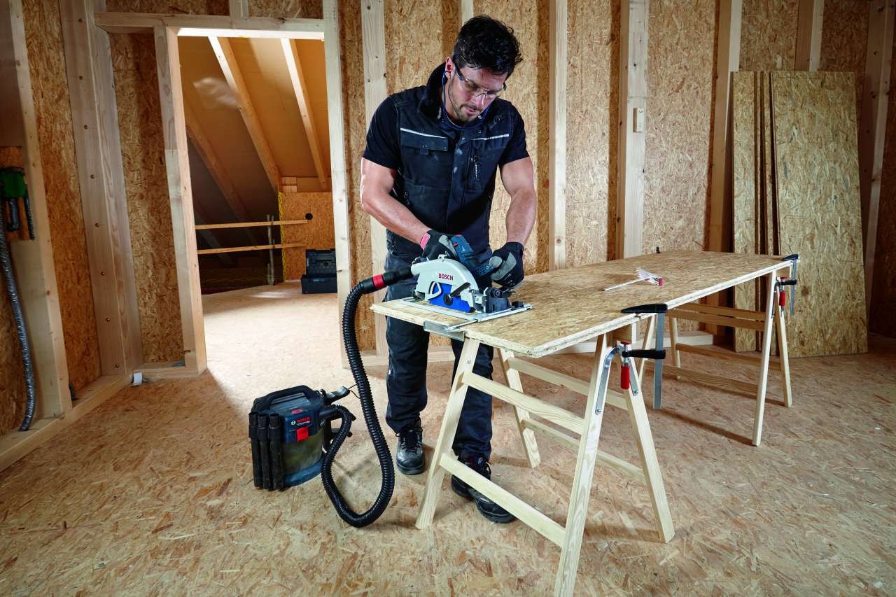 Det är perfekt för användning i trä och kompositmaterial med trä. Använd denna såg tillsammans med Bosch Click & Clean dammutsug, dammpåsar, anslutningsmodul GCY 42 och FSN styrskenor. Den är kompatibel med alla Bosch Professional 18 V-batterier och laddare (Professional 18V System). Maximal effekt uppnås med ProCORE18V = 8,0 Ah.