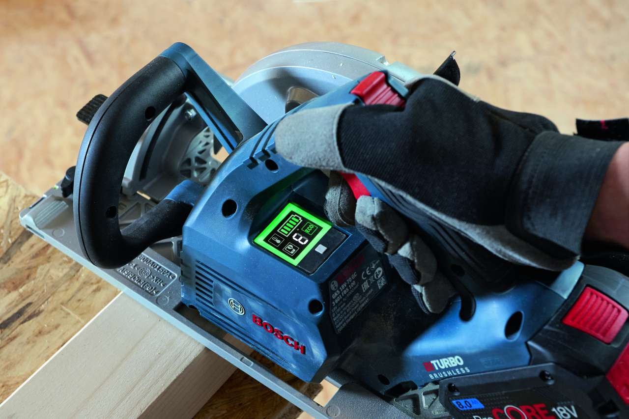 GKS 18V-68 GC Professional har ett användargränssnitt som möjliggör individuella hastighetsinställningar via smarttelefon och har också en snabbroms, ett ECO Mode för upp till 30% längre drifttid, överbelastnings- och omstartsskydd och ett spindellås.