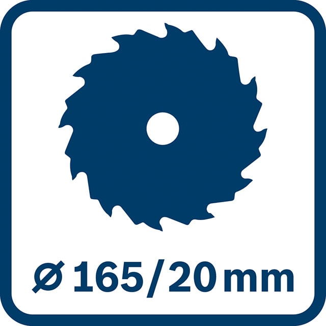 Levereras med Insex; Kartong; 1 x cirkelsågblad, Standard for Wood speed, 165 x 1,7 x 20 mm, 12 (2 608 642 600); Parallellanslag (1 608 190 007); Vakuumadapter