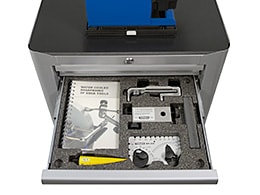 Levereras med Tormeks inreden: för maskintillbehör, för Hus- & hempaketet och för Svarvarepaketet (tillbehör och jiggar ingår ej). Övriga tre lådor med praktisk gummimatta.