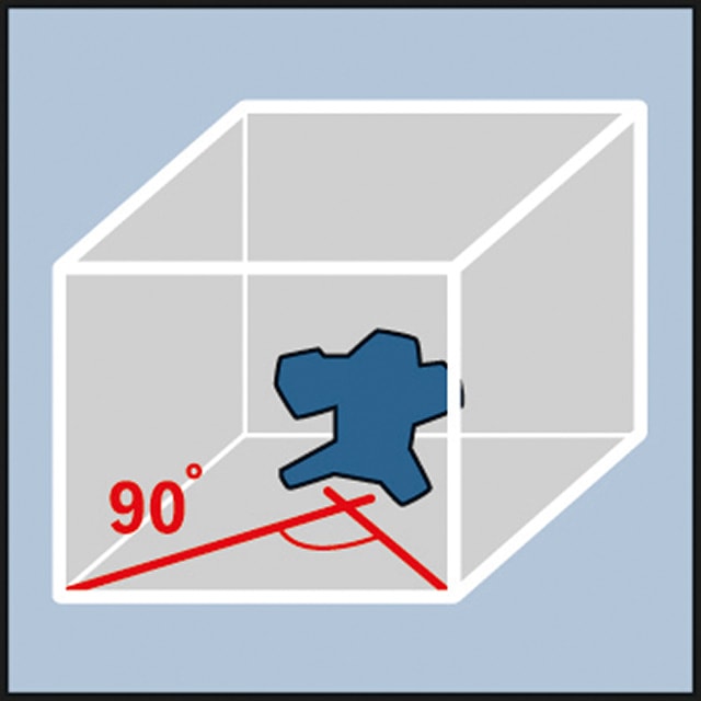 Projicerar förutom två 90°-iga laserlinjer även en tredje 45°-laserlinje för noggrann och snabb syftning vid sättning av kakel och klinker
