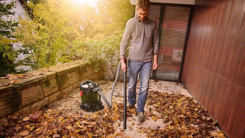 Universaldammsugaren AdvancedVac 20 är den perfekta lösningen för rengöring av både våta och torra material på golvet under gör-det-själv-projekt. Stora mängder vatten kan enkelt tappas av genom avtappningsmunstycket samtidigt som blåsfunktionen tar bort löv och smuts från svåråtkomliga utrymmen. Den antistatiska slangen minimerar elektrisk urladdning. För konstant rengöring kan denna dammsugare anslutas direkt till valfritt verktyg från Bosch Home & Garden och elverktyg från flera andra tillverkare tack vare den flexibla universaladaptern och dess konform. Den slås på och stängs av tillsammans med verktyget, vilket förbättrar hanteringen och reducerar rengöringstiden.
