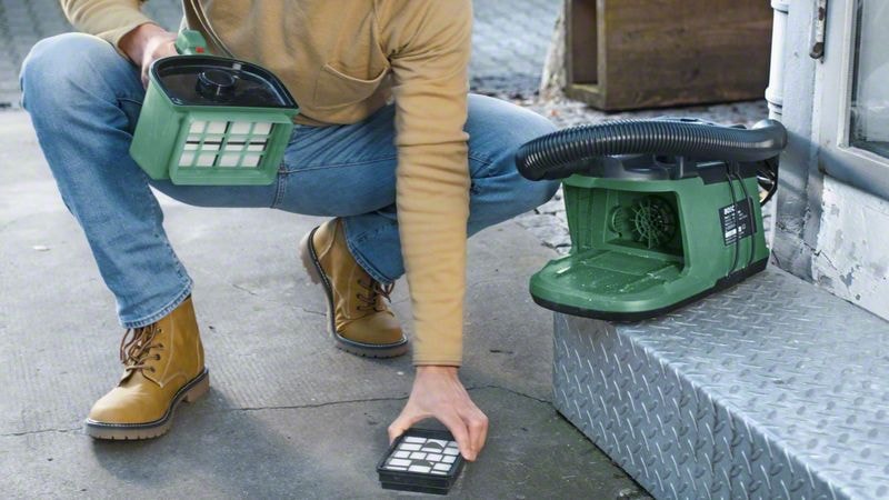 Upplev rengöring utan ansträngning, enkel transport och enkel förvaring med EasyVac 3. Alla kablar och slangar ansluts direkt till dammsugaren för enkel och praktisk förvaring. Ett praktiskt handtag gör denna dammsugare enkel att transportera och förvara. Den rengör torr smuts i svåråtkomliga utrymmen, i verkstaden, i hemmet och i bilen. För konstant rengöring kan denna dammsugare anslutas direkt till valfritt verktyg från Bosch Home & Garden och elverktyg från flera andra tillverkare tack vare den flexibla universaladaptern och dess konform. Den slås på och stängs av tillsammans med verktyget, vilket förbättrar hanteringen och reducerar rengöringstiden.