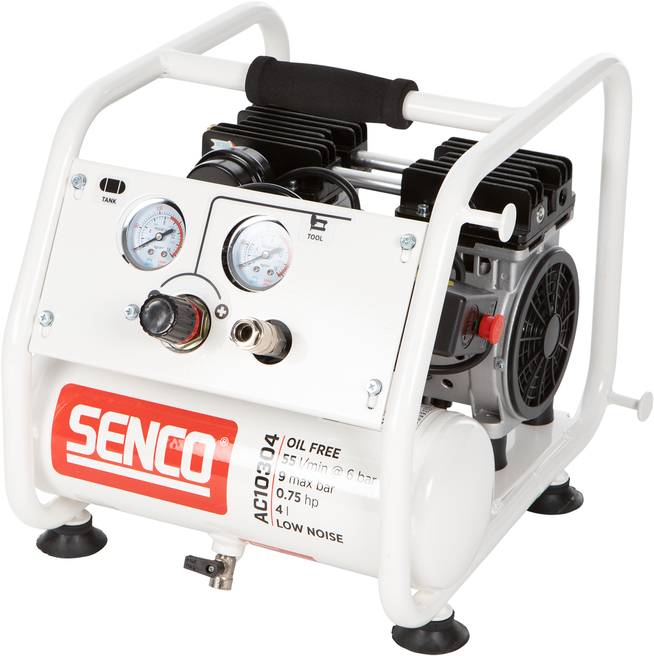 Den bärbara kompakta och kraftfulla Senco AC10304 kompressorn är den perfekta kompressorn för bland annat dyckertverktyg och klammerverktyg.