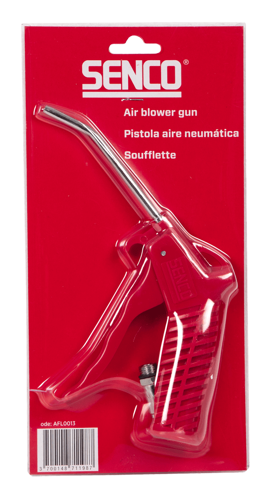Blåspistol i aluminium som är lätt att koppla på tryckluftsslangen till kompressorn.