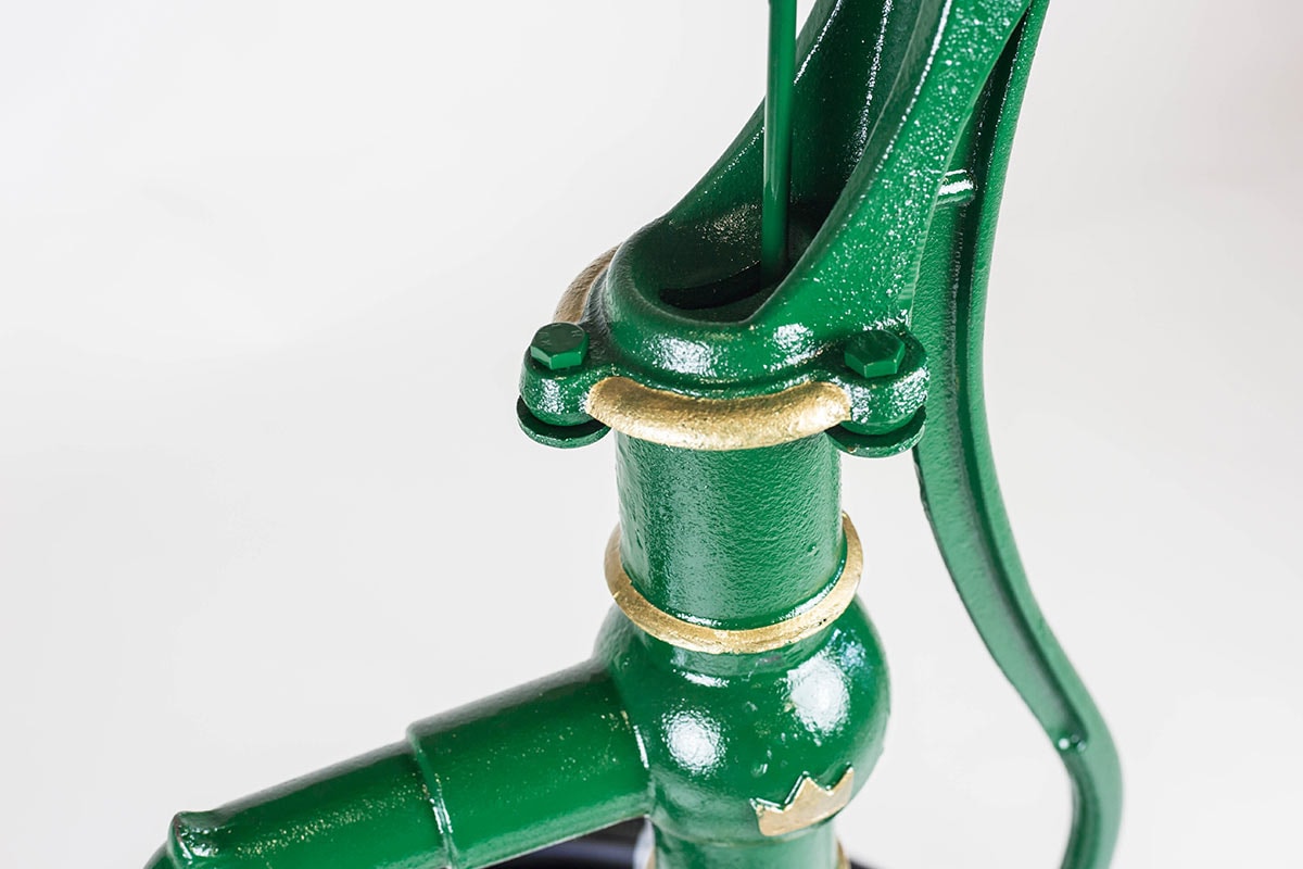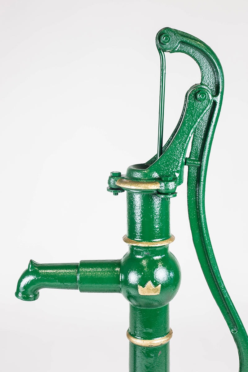 Gårdspump Kronan är en elegant, klassisk modell i gjutjärn för grävda brunnar. Pumpen är fullt funktionell och kan användas både som ett komplement till elektriska brunnspumpar eller som en vacker prydnad i trädgården. Gårdspumpen Kronan har sett mer eller mindre likadan ut sedan tillverkningen startade i början av 1900-talet och den ger en charmig känsla till sommarstugan eller hemmet. Gårdspumpen Kronan levereras komplett med sugkit innehållande bussning, PEM kopplingar, 10 meter PEM 32 slang samt gängtejp.