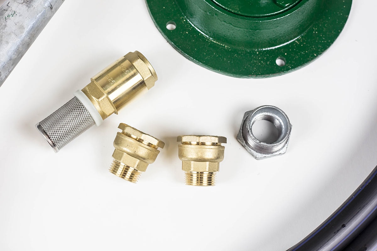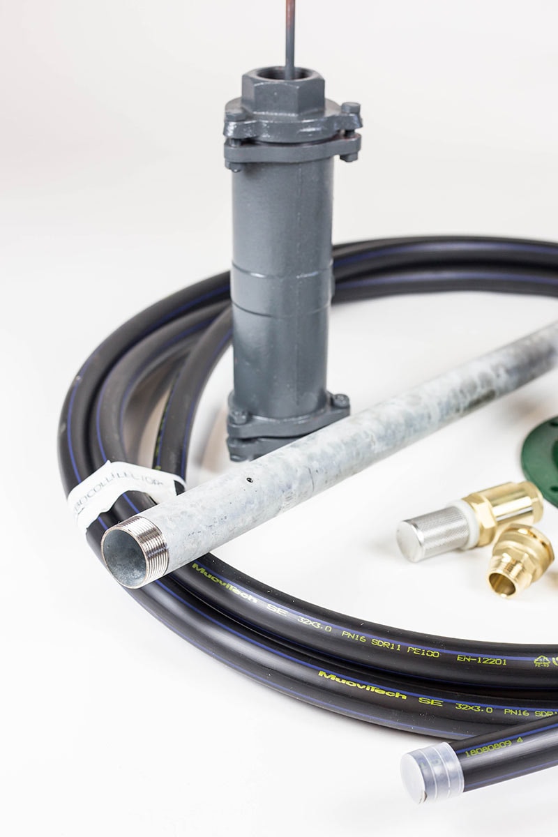 Den kompletta Gårdspumpen Kronan levereras med cirka 1 meter rör sugkit innehållande bussning 40x25 mm, PEM kopplingar R25x32 mm, 10 meter PEM 32x26 mm slang samt gängtejp teflon 12mmx12 m. Max sughöjd cirka 7 meter.