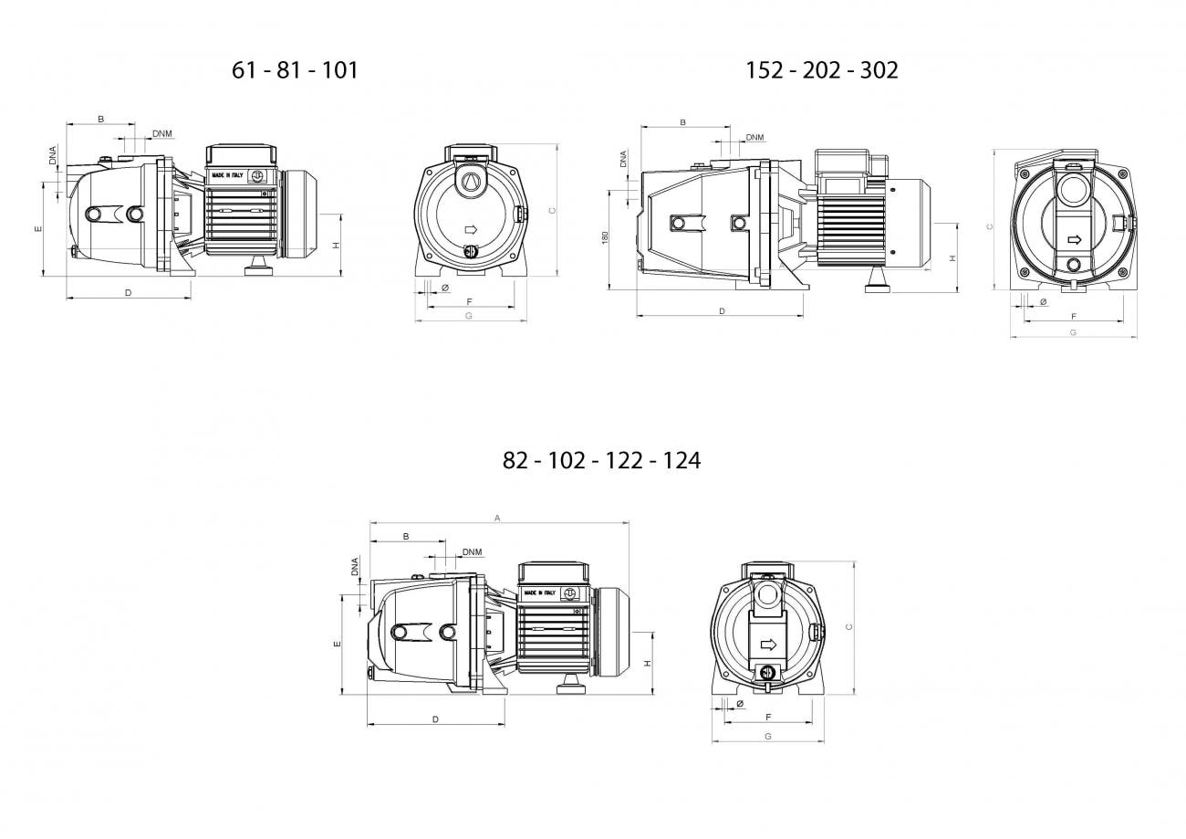Jet 302 T (3-fas) är självsugande jetpump för att pumpa rent vatten som även klarar inslag av gas.