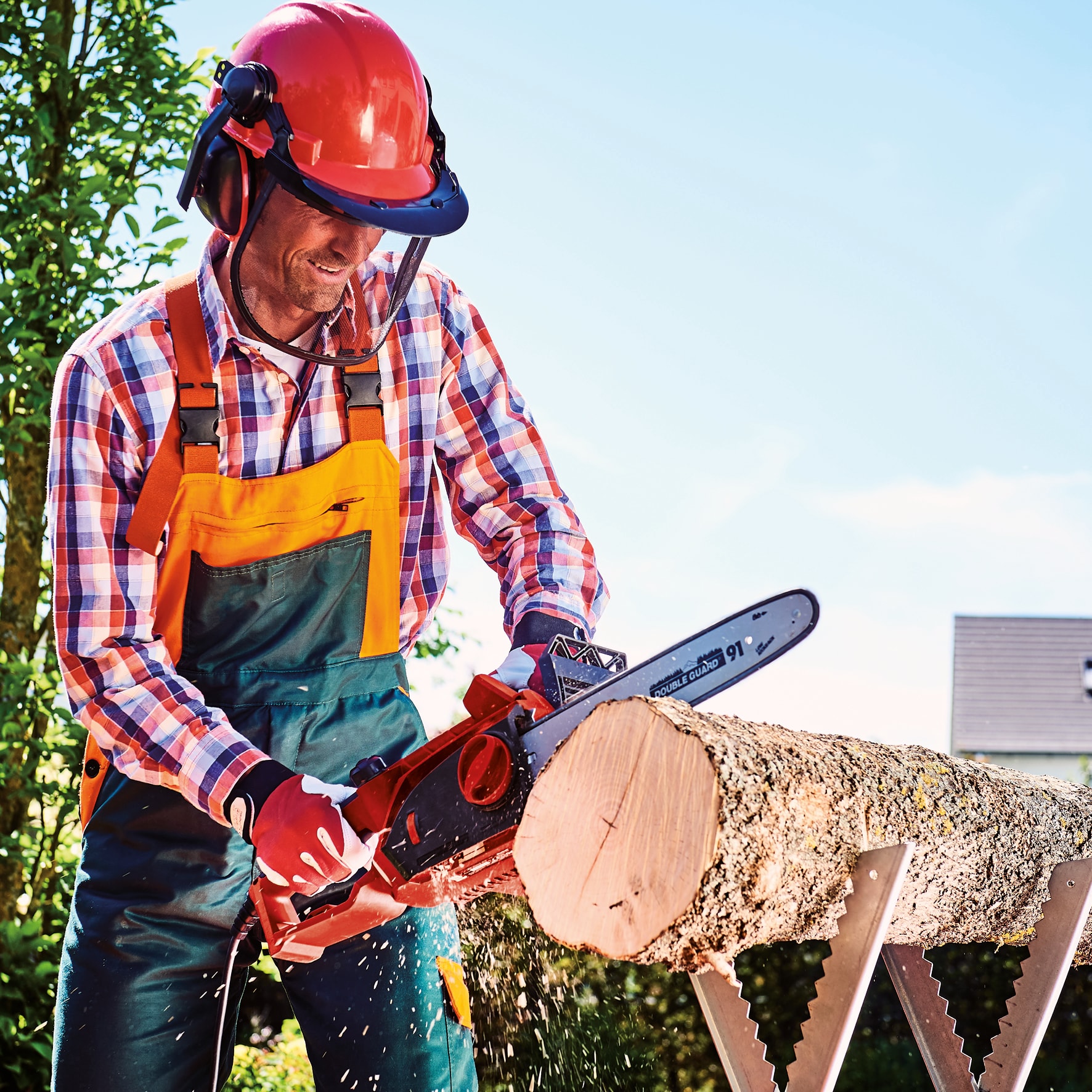Kvalitetssvärd och -kedja från OREGON garanterar optimalt kapningsresultat. Kedjan kan spännas och bytas ut utan verktyg.Hög kvalité och säkerhet