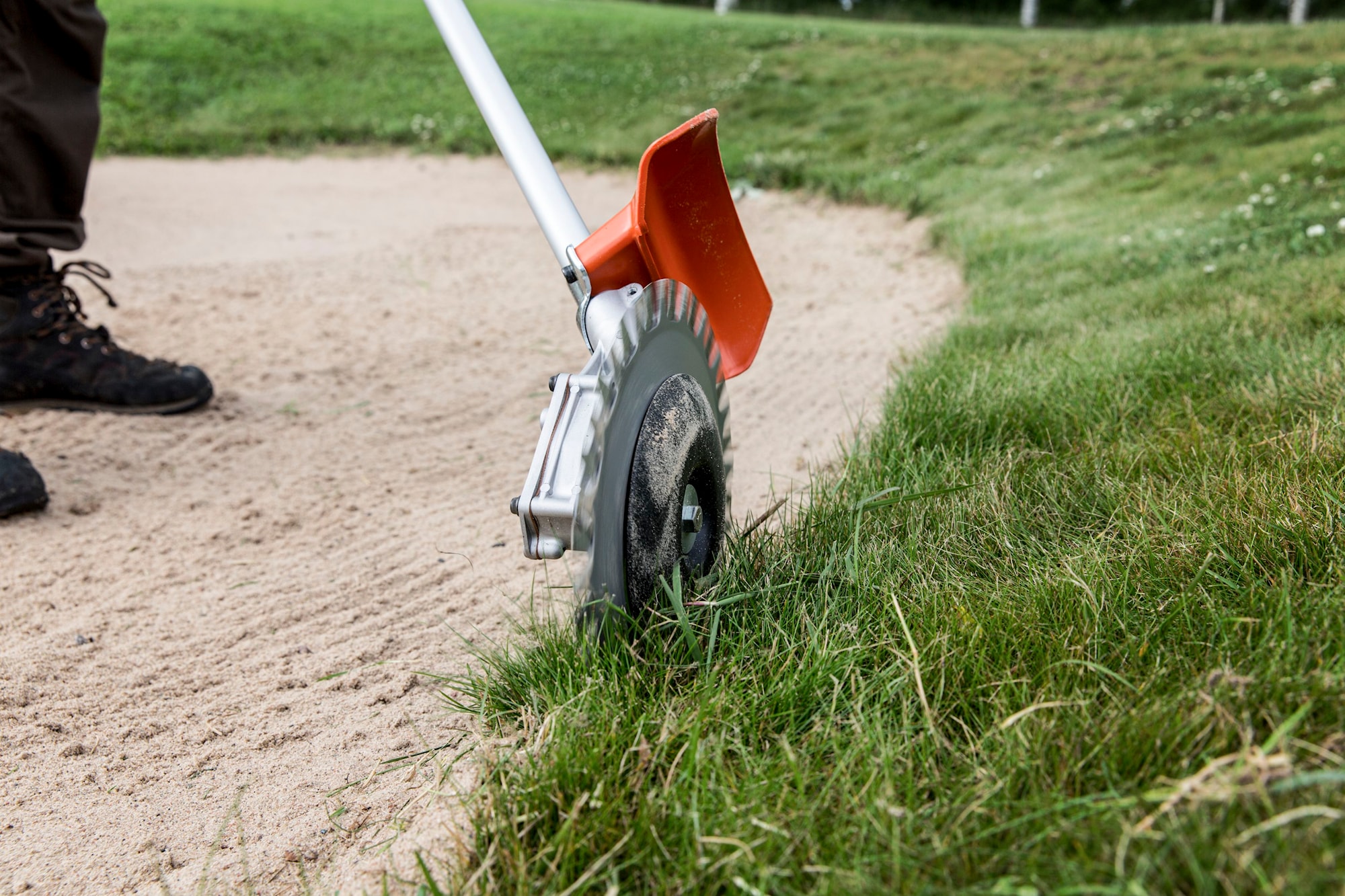 Kombifäste för Husqvarna LK-batteri och bensindrivna kombitrimmers förutom 535LK. Utvecklad för säkrare och effektivare ogräsrensning och kantklippning längs trottoarer och grusvägar, där risken för att stenar och skräp kastas runt finns med en vanlig trimmer. De robusta, hållbara dubbelverkande knivarna arbetar fram och tillbaka för att skära gräset som en sax.