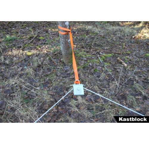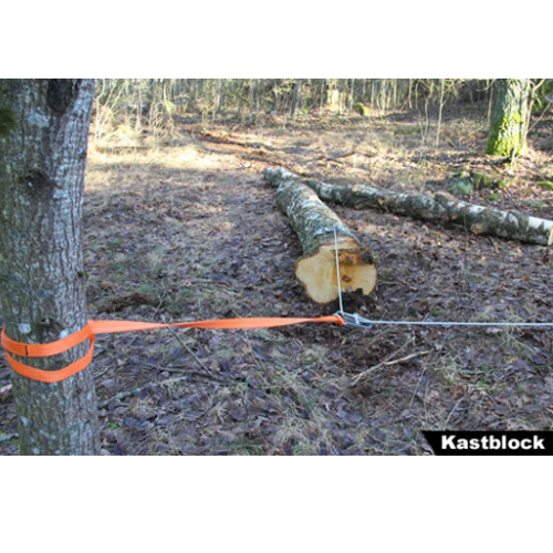 Med detta galvade kastblock kan man få vajern att ändra riktning så att man kan vinscha runt stubbar, träd, stenar och annat. Kastblocket fästs i ett lämpligt träd med tillhörande band som läggs som en snara runt trädet.