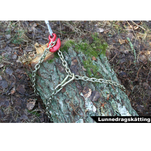 Lunnedragskättingen är ca 2 meter lång och har en päronögla i ena änden och en sprint i andra ändan.