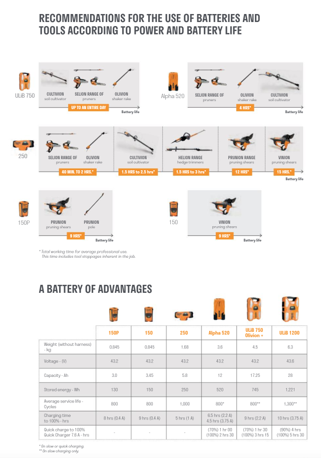 UliB 1200-batteriet har designats för att möta professionella krav vad gäller prestanda, komfort och varaktighet. PELLENC designade batteriet 1 200 i samarbete med trädgårdsproffs för att uppnå en prestanda, ergonomi och autonomi som revolutionerar trädgårdsyrket. Detta ULiB 1200 batteri kan användas med alla Pellenc elektriska handverktyg, med undantag för Prunion. Användbar i alla väder tack vare en täthetsnivå på IP54. Synlighet i mörker eller vid dåliga väderförhållanden tack vare de 4 reflexerna och en blinkande lampa.