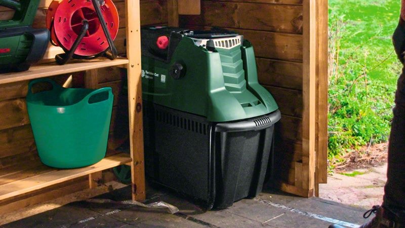 - Bekväm förvaring genom att ta av tratten och reducera kompostkvarnens storlek till endast 67 cm