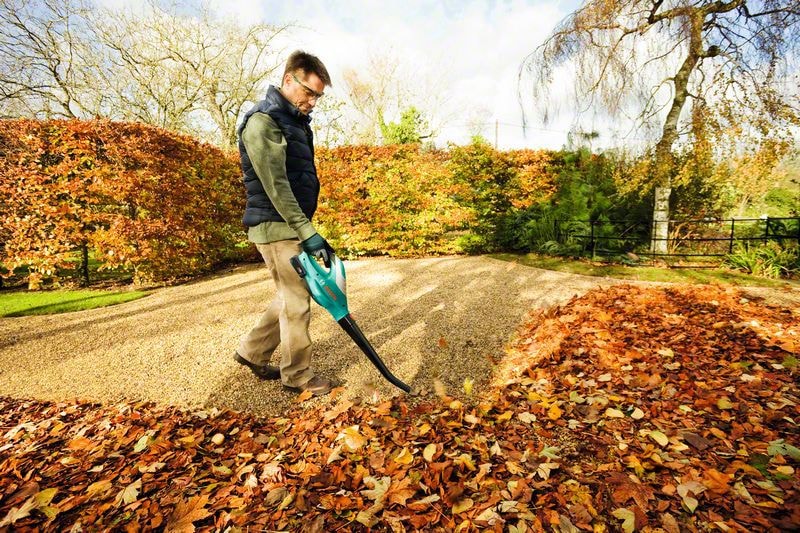- Enkel rensning av löv och annat från uteplats och trädgårdsområden